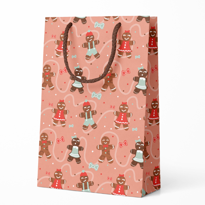 Our gift bag is adorned with with our Gingerbread holiday-themed design that capture the true spirit of the season, these bags are a stylish choice for any gift.
